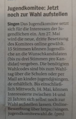 Alle anderen können ihren Wahlcode per Mail unter kinder-jugend@singen.de anfordern.