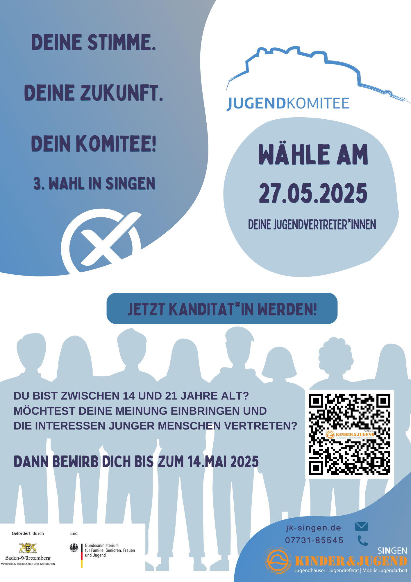 Wir freuen uns auf eine erfolgreiche Wahl und neue engagierte und motivierte Jugendliche für unser Jugendkomitee 2025-2027 der Stadt Singen.
