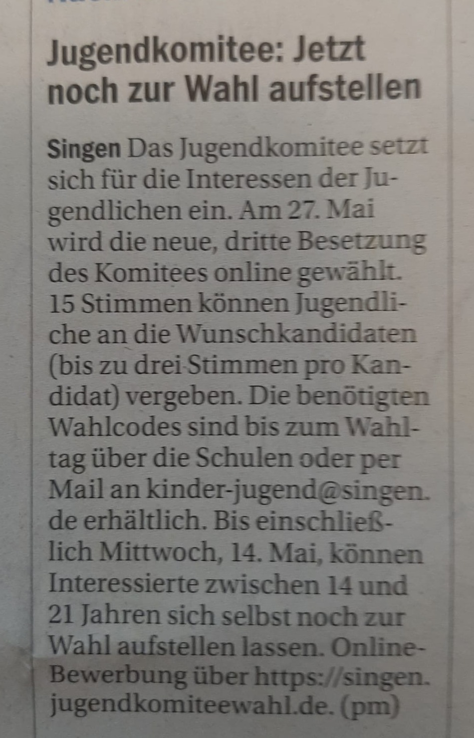 Alles Wichtige zur Wahl und Kandidatur selbst, findest du auf unserer Homepage https://singen.jugendkomiteewahl.de/.